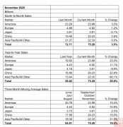 2025 年11 月全球半导体销售额753 亿美元,环比增长3.5%,同比增长29.8%,创下历史新高。
